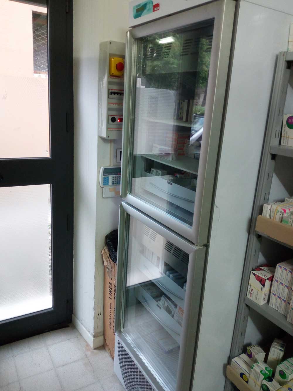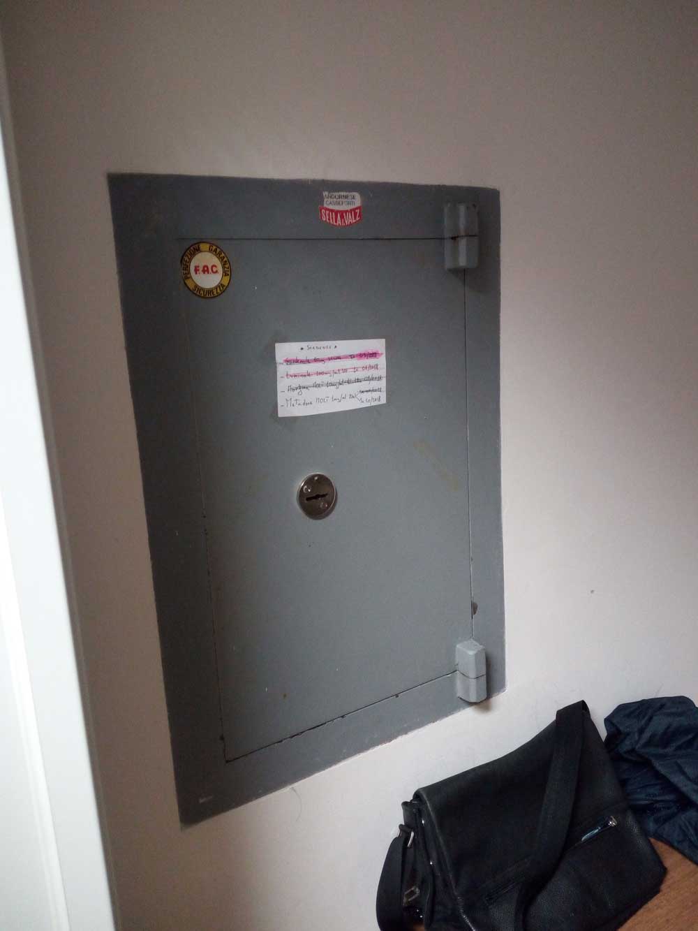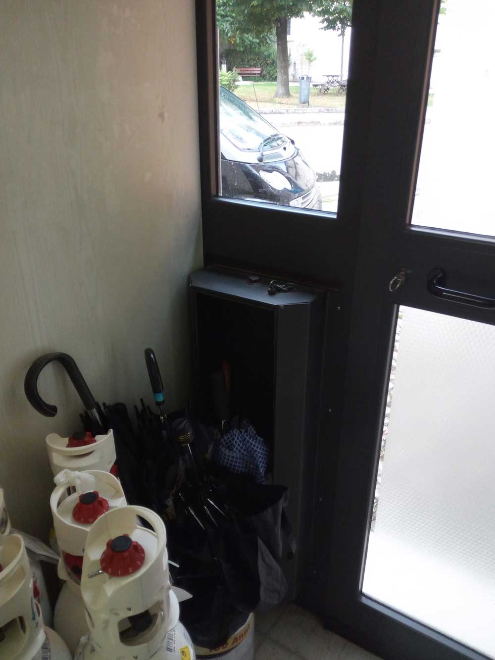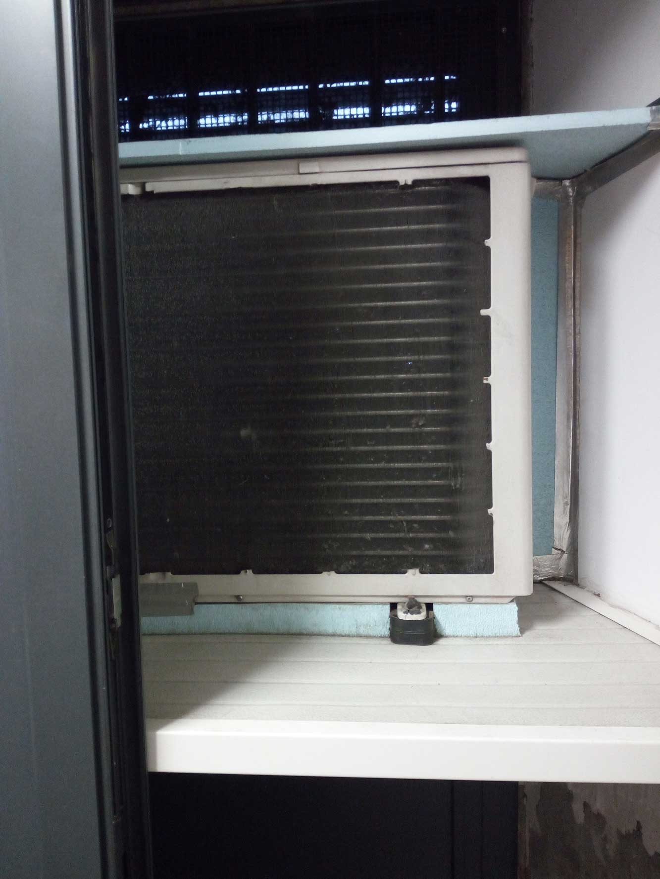 porta metallica colore grigio scuro con serratura per motore condizionatore e consegna farmaci |