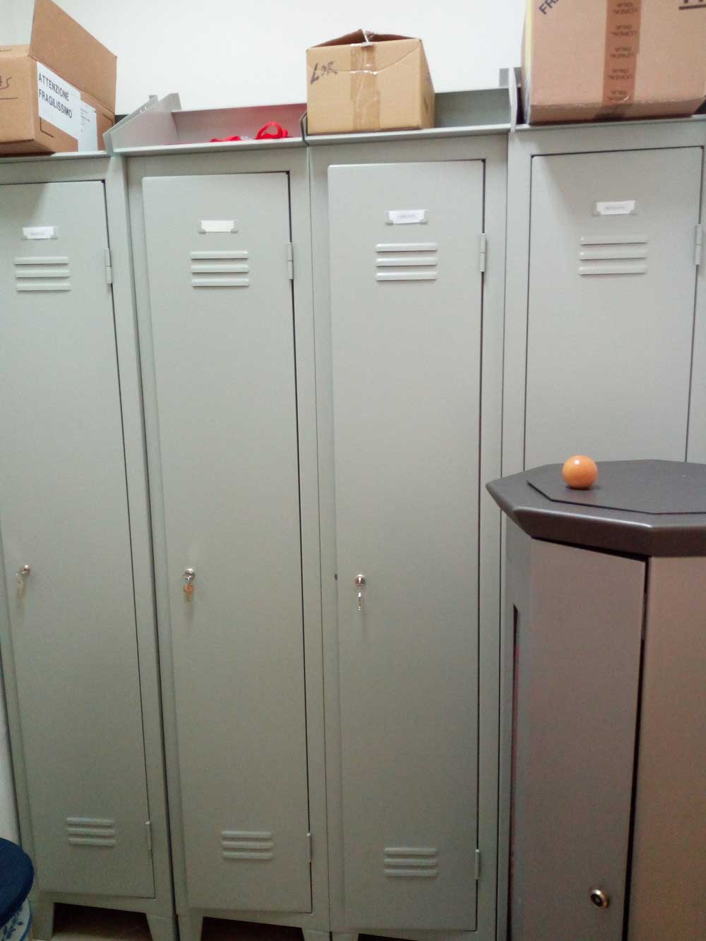 armadietto spogliatoio metallico grigio con chiusura a chiave |