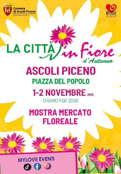 Piazza del Popolo si colora con “La Città in Fiore”, nella sua veste autunnale. Sabato 1 e domenica 2 novembre 2025 in una delle piazze più belle d’Italia, ad Ascoli Piceno, torna la mostra-mercato a tema floreale e naturale che porta bellezza, creatività e profumi nel cuore della città. La manifestazione, organizzata da Mylove Eventi e patrocinata dal Comune di Ascoli Piceno, si conferma uno degli appuntamenti più attesi nel calendario delle mostre-mercato a tema floreale della Regione Marche. Nata come evento primaverile, da alcuni anni, in numerosi comuni della regione, si ripete anche in autunno, su richiesta del pubblico appassionato di giardinaggio ed eventi all’aperto. In piazza del Popolo saranno circa 25 gli stand, che proporranno in vendita piante grasse, ornamentali, ciclamini di ogni misura, vasi di Deruta e tunisini, creatività a tema con l’evento, miele, prodotti derivati dalla terra, artigianato in legno, fiori e piante artificiali e in legno, bigiotteria con pietre naturali e motivi floreali